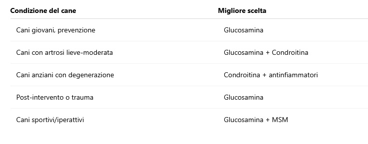Non c'è una risposta unica: la scelta tra glucosamina, condroitina o entrambi dipende dall'età, stile di vita e condizione articolare del tuo cane. Per risultati concreti, affidati a integratori di qualità e segui sempre il parere del tuo veterinario.